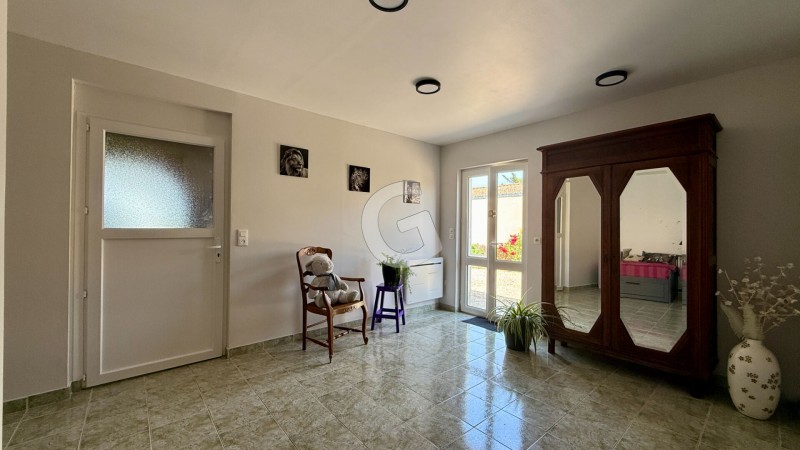 Ici et nulle part ailleurs, charmante maison d'habitation sur la commune de GRUES. Elle se compose d'une entrée, un salon - séjour avec belle hauteur sous plafond, 2 cuisines aménagées et équipées, 2 salle d'eau avec WC, 1 WC séparé, un cellier, une lingerie, 3 chambres dont 1 à l'étage. Double garage, dépendance, puits, portail motorisé. Le tout sur un très beau terrain de 1786 m². A voir rapidement !