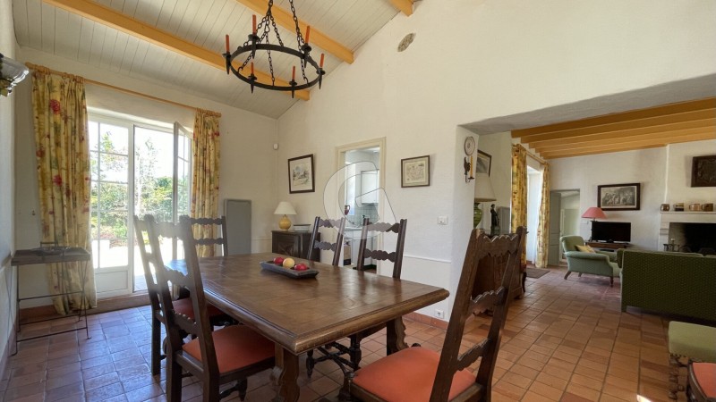 * Dès l'entrée, vous serez séduit par ses volumes généreux et son atmosphère chaleureuse. La maison propose un bel espace de vie avec séjour et salle à manger agrémentés d'un foyer ouvert, idéal pour des moments conviviaux. La cuisine, aménagée et équipée, complète parfaitement cet espace.