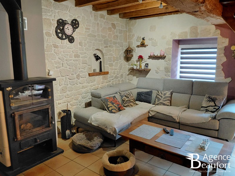 Une pièce de vie spacieuse, avec son poêle à bois de qualité pour des soirées chaleureuses en famille ou entre amis.
