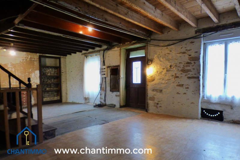 Dans bourg avec premiers commerces, beaucoup de charme et de caractère pour cette maison en pierres à finir de rénover comprenant une cuisine, un séjour/salon spacieux, une chaufferie. A l'étage 2 grandes chambres et un bureau, sanitaire et un grenier aménageable de 90M².