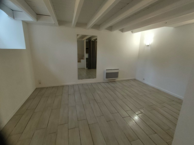 FONTENAY LE COMTE, CENTRE VILLE quartier Saint Jean, maison de ville meublée libre au 8 novembre 2025 comprenant une pièce de vie de 17,30M² avec cuisine aménagée et équipée, à l'étage une chambre avec salle d'eau et wc. Au sous-sol une pièce carrelée pouvant faire office de bureau ou autre. En face : préau voiture avec partie atelier et jardinet.
