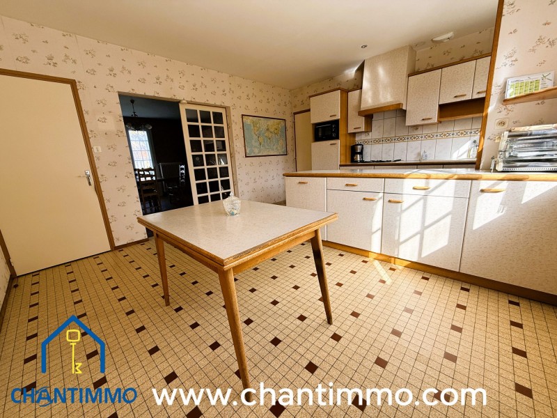 Dans bourg avec tous commerces, pavillon de plain pied très fonctionnel comprenant un hall d'entrée, un séjour salon avec cheminée ouverte, une cuisine aménagée, couloir, 3 chambres de 12M², salle d'eau refaite, WC.