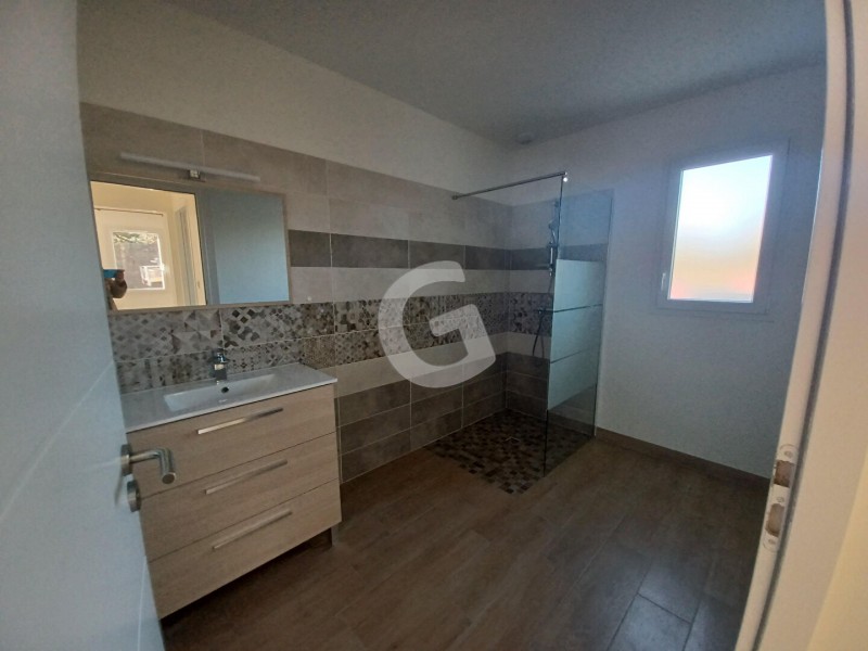 A louer de suite, maison récente comprenant un séjour-salon avec espace cuisine aménagée (plaque cuisson, four et hotte), un cellier.
