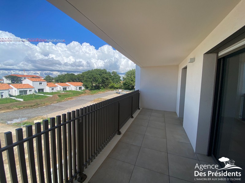 Appartement Neuf de type T2 au 2ème étage avec ascenseur et une place de parking souterrain composé d'une pièce à vivre avec coin cuisine aménagé (plaque de cuisson, hotte, réfrigérateur top) en accès sur la terrasse (11.62m²), une chambre avec salle d'eau, WC indépendants.